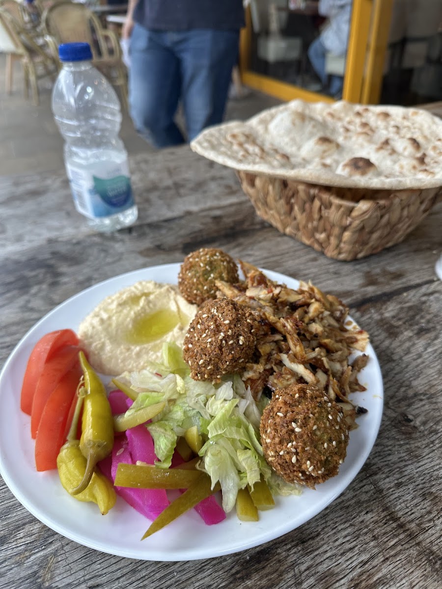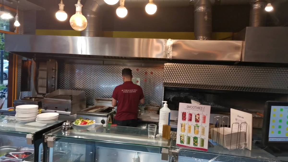 Bakery on one side, cafe on the other. Nice setup inside the cage area. Best falafel I have ever had. Lovely and crisp on the outside, fluffy on the inside. Lamb manakeesh was fresh and full of flavour. Great service and value for money. Looking forward to my next visit.